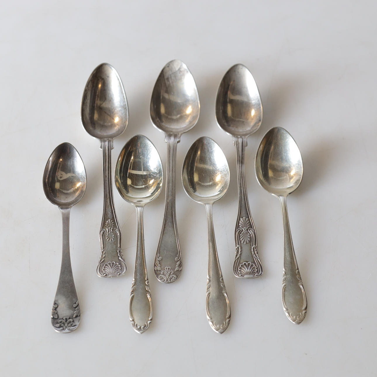 SPOONS & COINS, 17 pcs, silver. Total weight approx. 186.9 g.