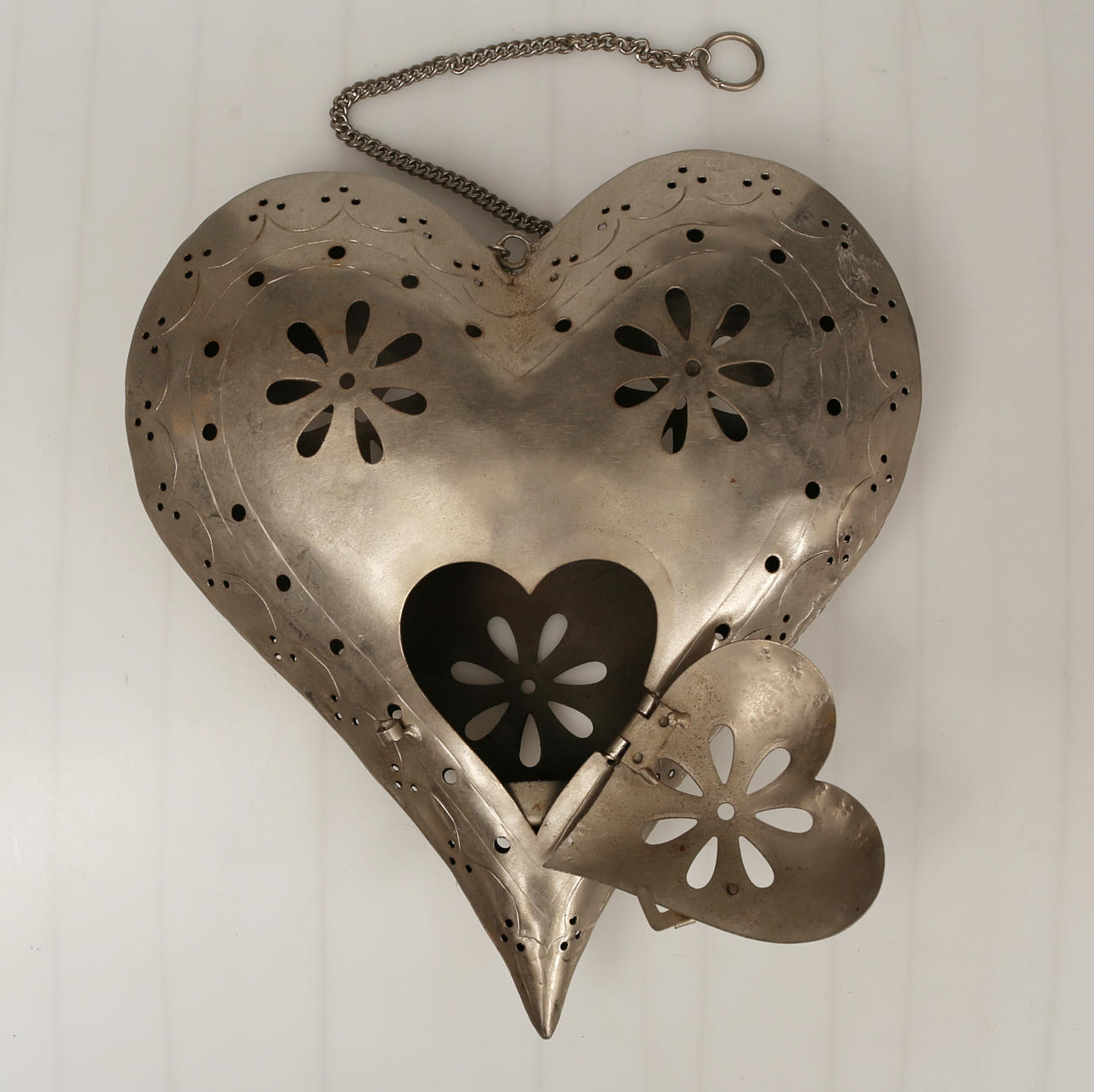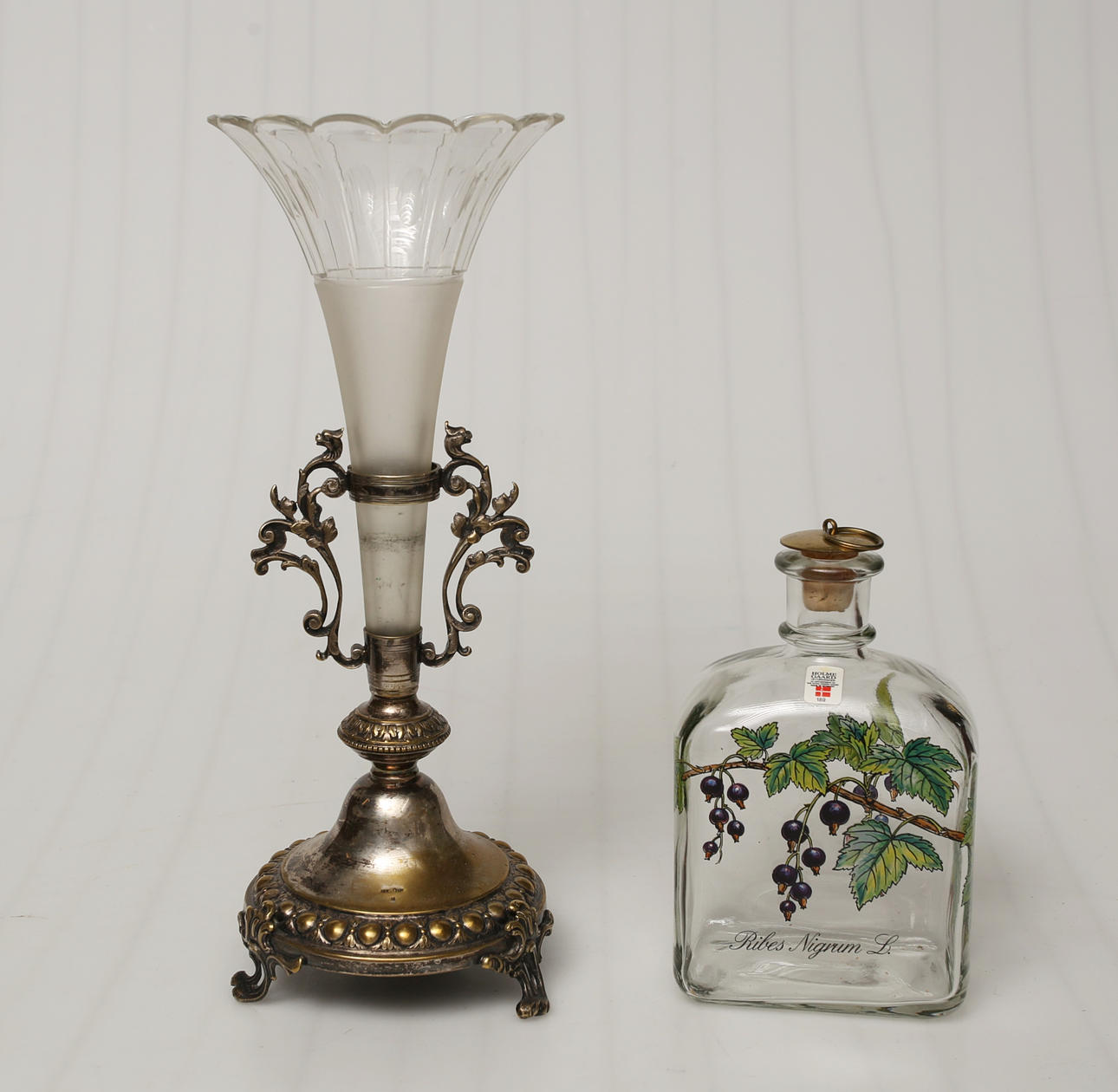 Decanter with stopper, Holmegaard and HEART in metal. Height of vase: 32cm Height decanter: 18cm Heart: 30x30cm. Condition Age and surface wear. 17996