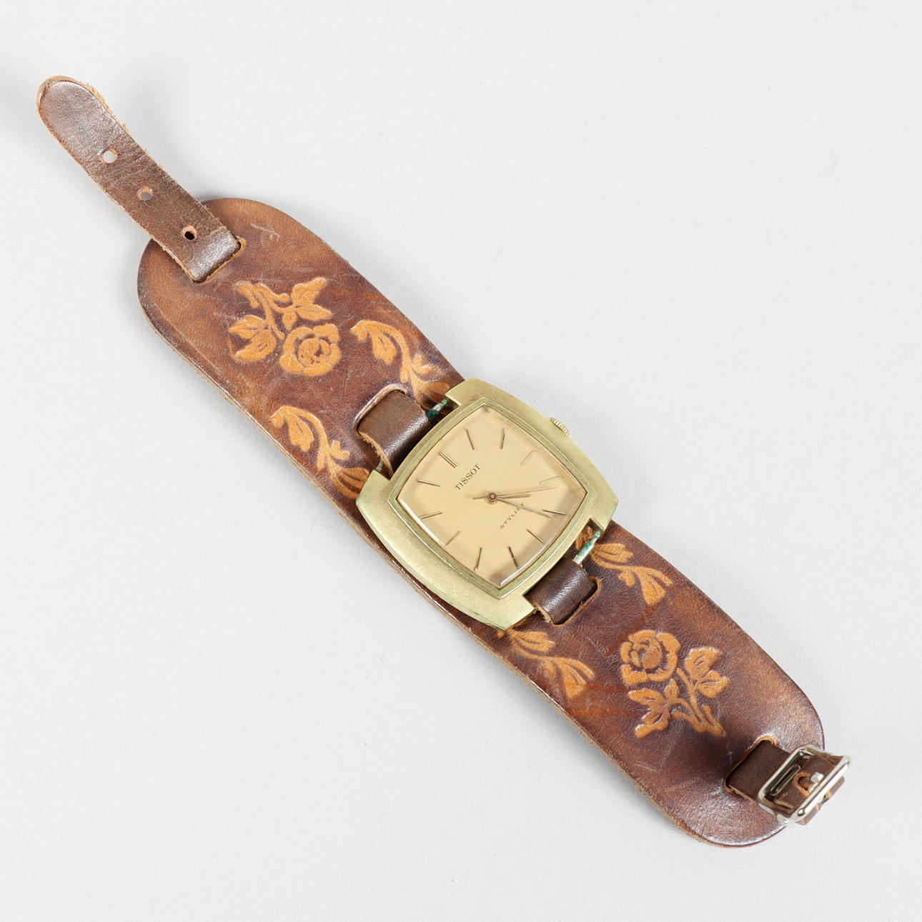Leather bracelet. Case approx. 36 x 36 mm. Condition Normal wear and tear, marks and scratches. Worked at the time of cataloging. No functional warranty is provided. 50793
