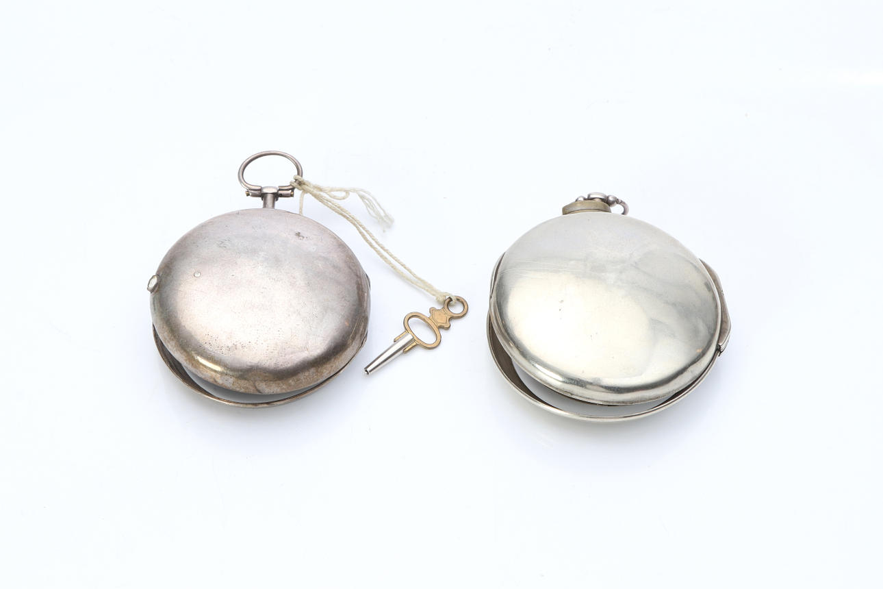 Key puller, 19th century. Diameter, excl. outer case, approx. 49-50 mm. A clock key is included. Condition Normal wear and tear, one watch with a rupture in the side. One clock runs for a while, one clock does not go at the time of cataloging. No functional warranty is provided.