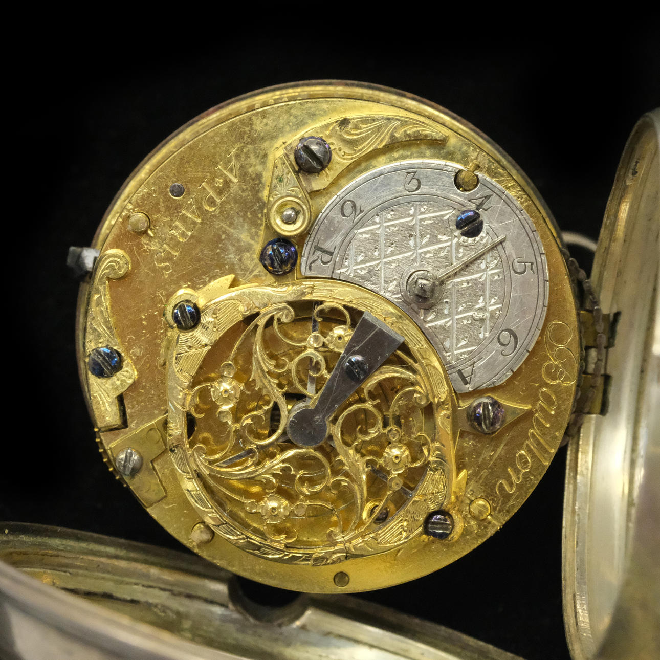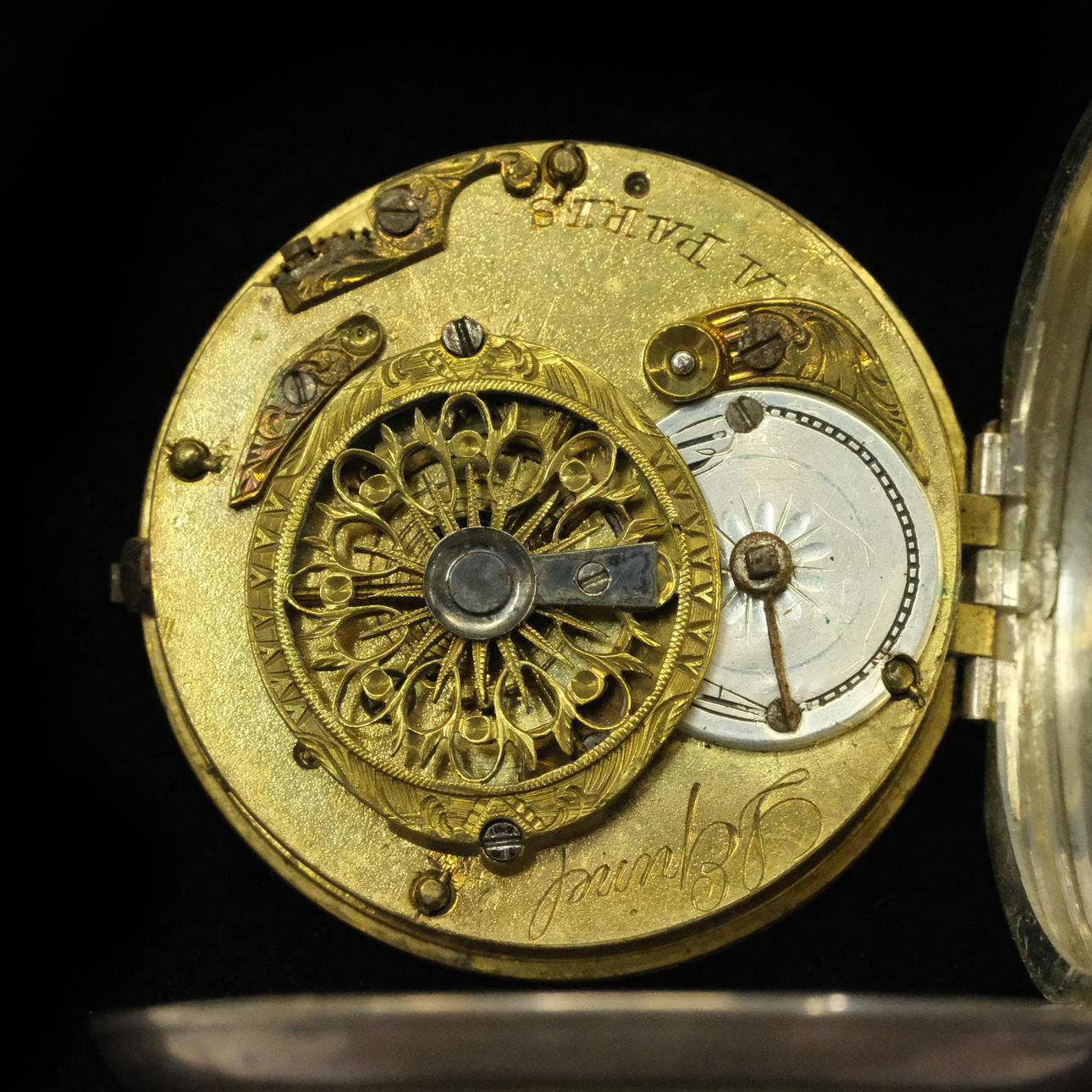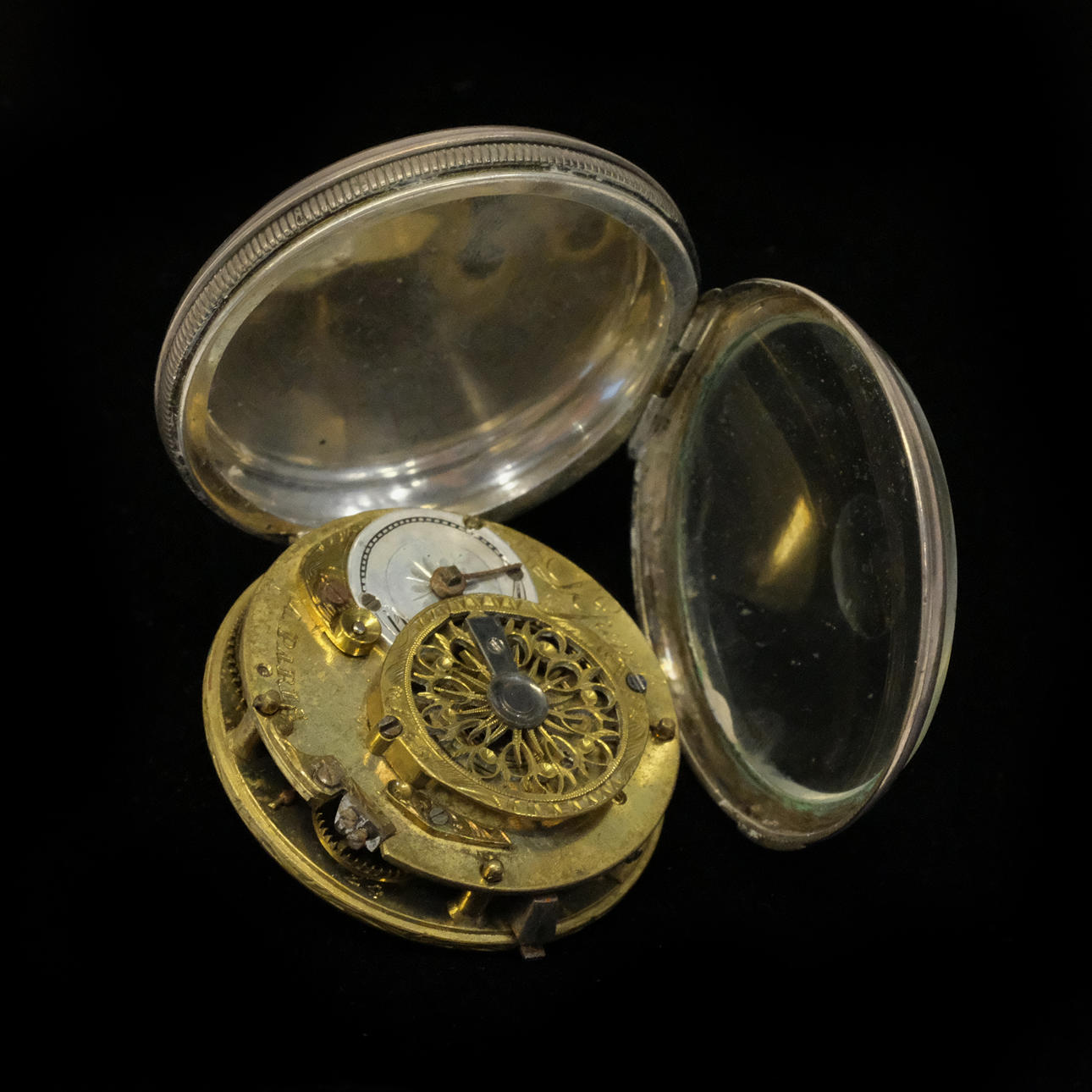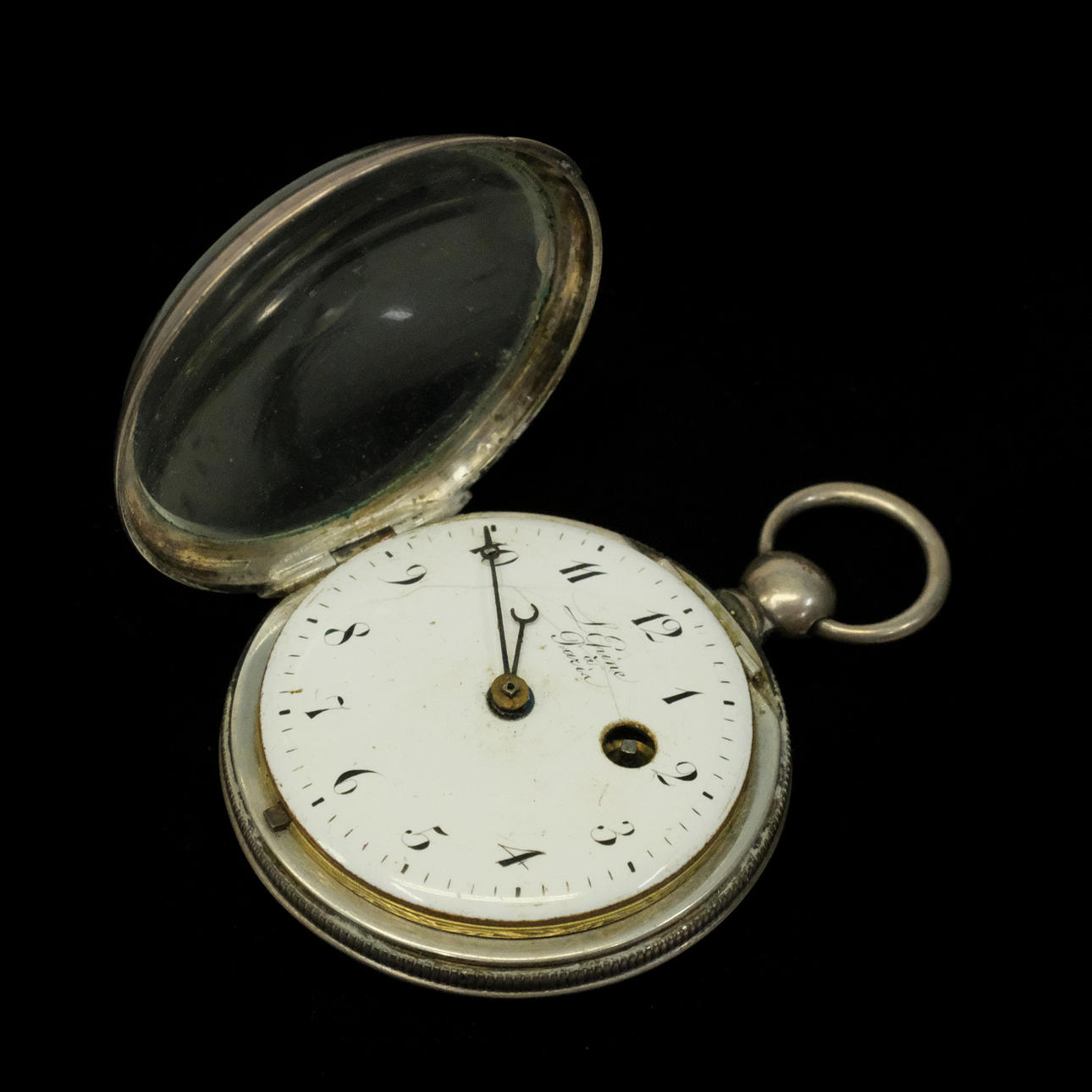 Baillon in Paris. Pocket watch with spider gait. Diameter: about 45mm. Brass clockwork. Silver case. L'Epine in Paris. Pocket watch with spider gait. Diameter: about 45mm. Brass clockwork. Silver case. Condition Not functional tested. No functional warranty is provided. Dials with damage. Use and surface wear. 30017