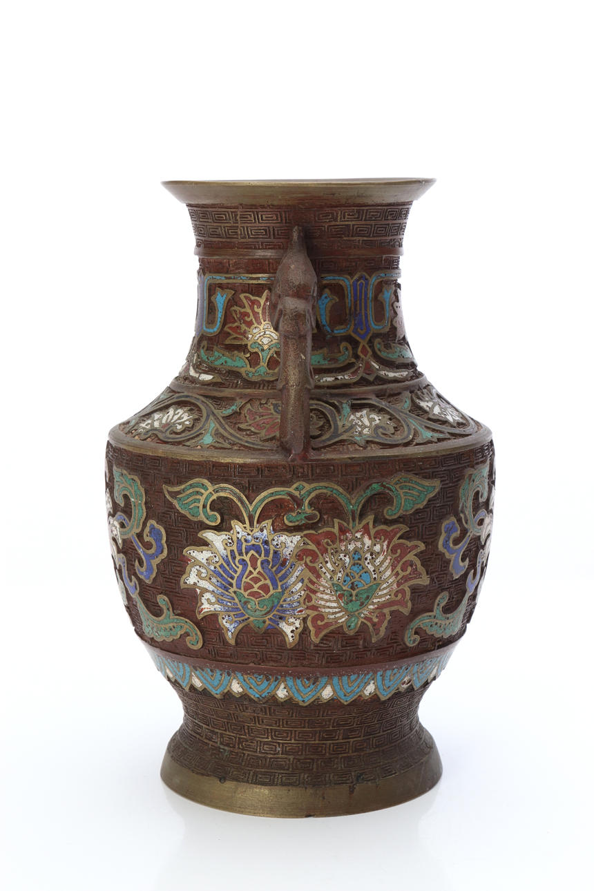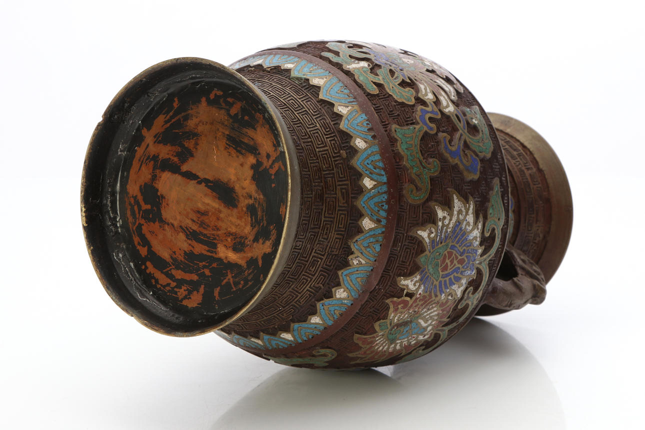 VASE. Bronze with decoration in cloisonné work. China, 19th century.