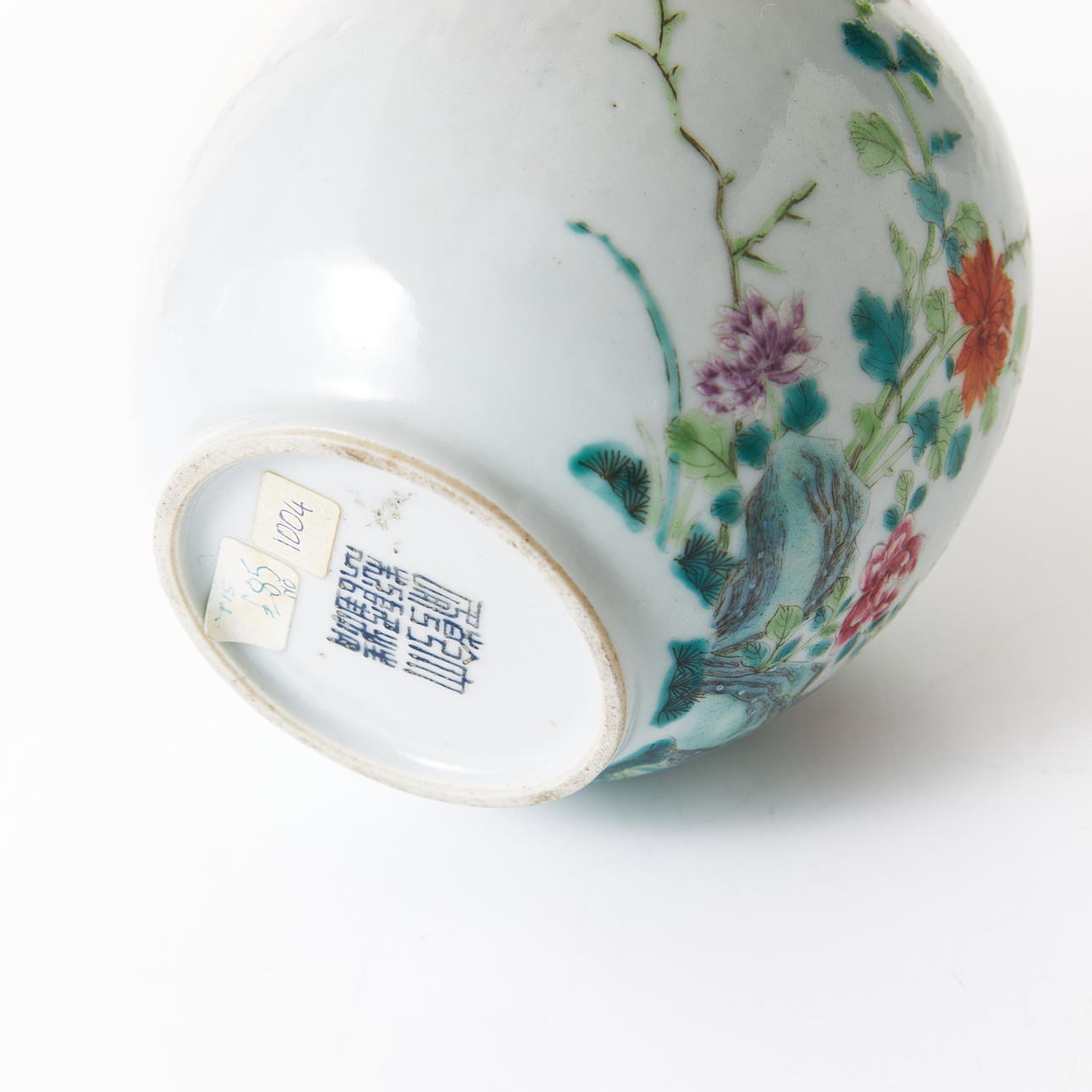 Garden rock decoration with flowers in enamel colors and iron oxide, base with Qianlong seal mark. Description Height approx. 10 cm. Fitness report Wear, edge repair. 152606