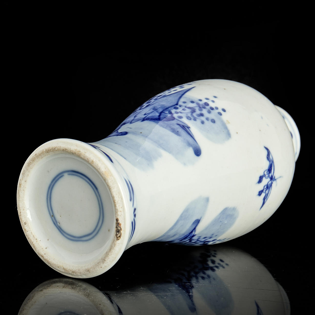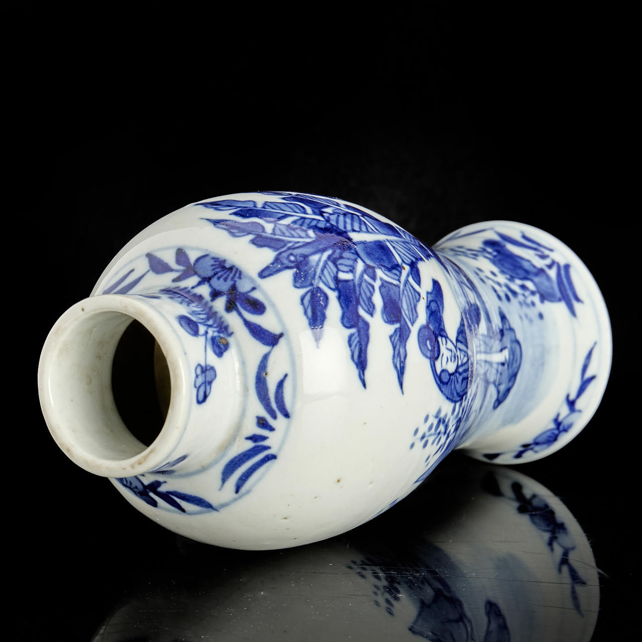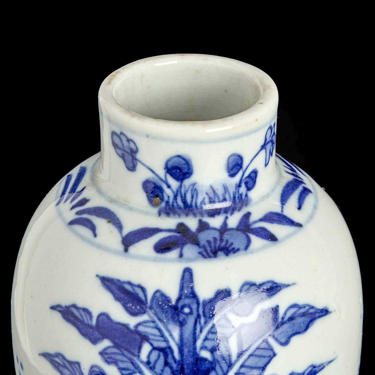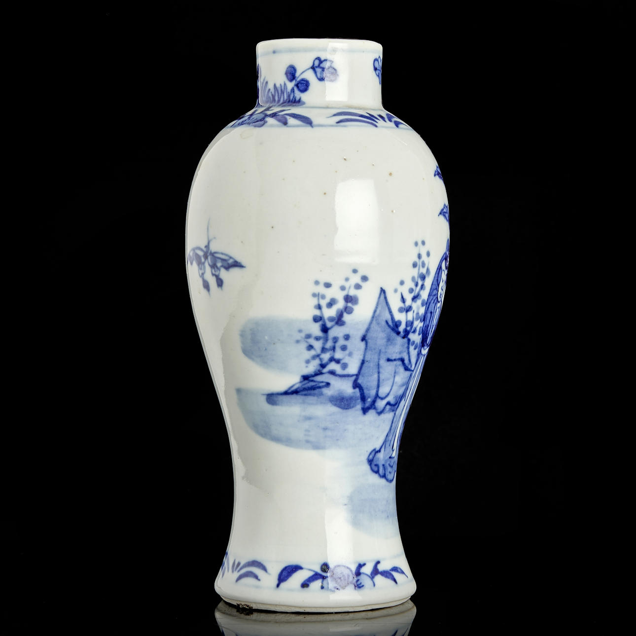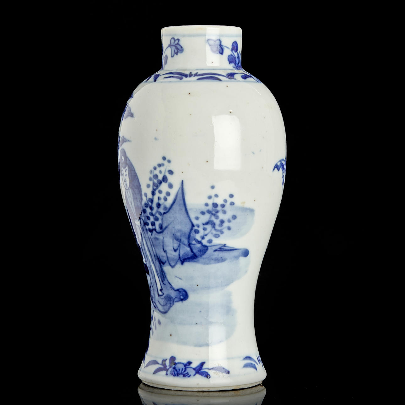 Vase, porcelain, China, figurine scenes in blue and white underglaze painting.