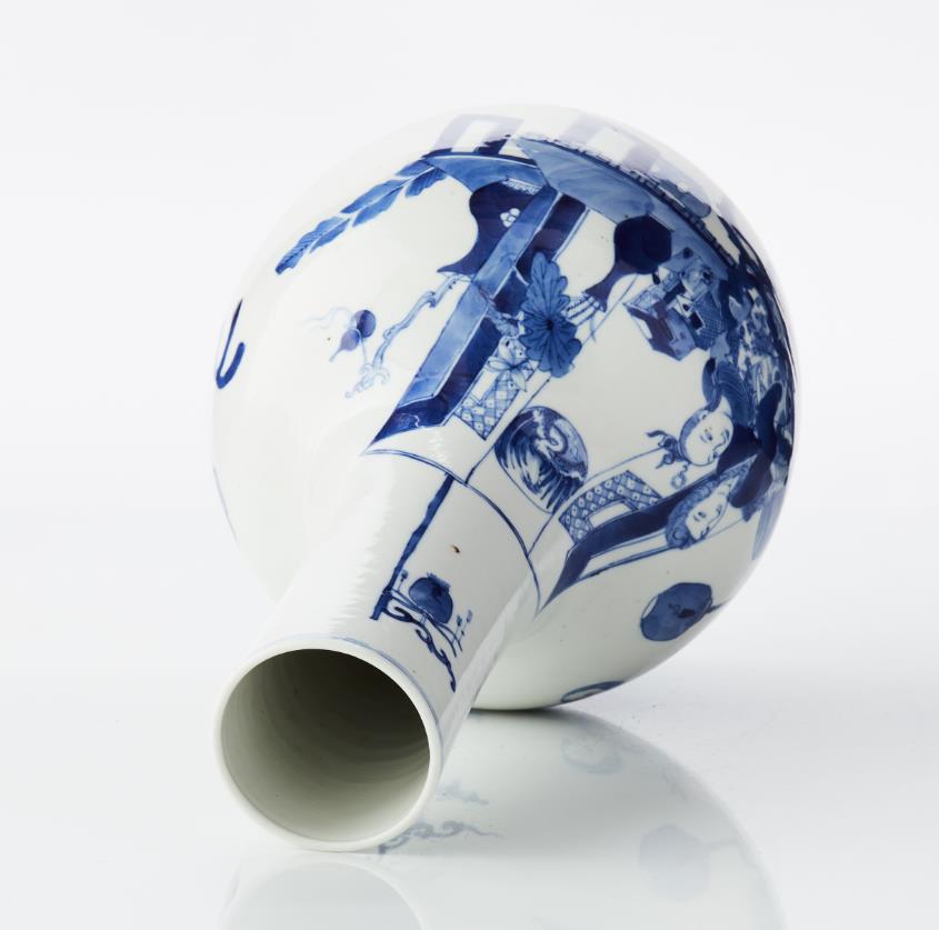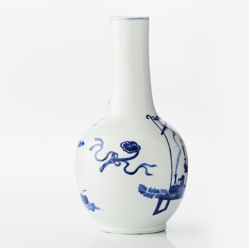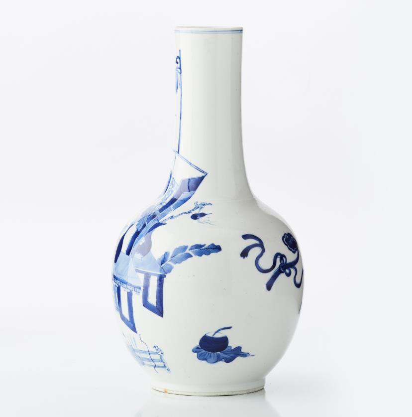 Decoration of figure scene and antiques in blue-and-white underglaze. Six-character badge by Wanli. H 39 cm. Condition report Minor wear.