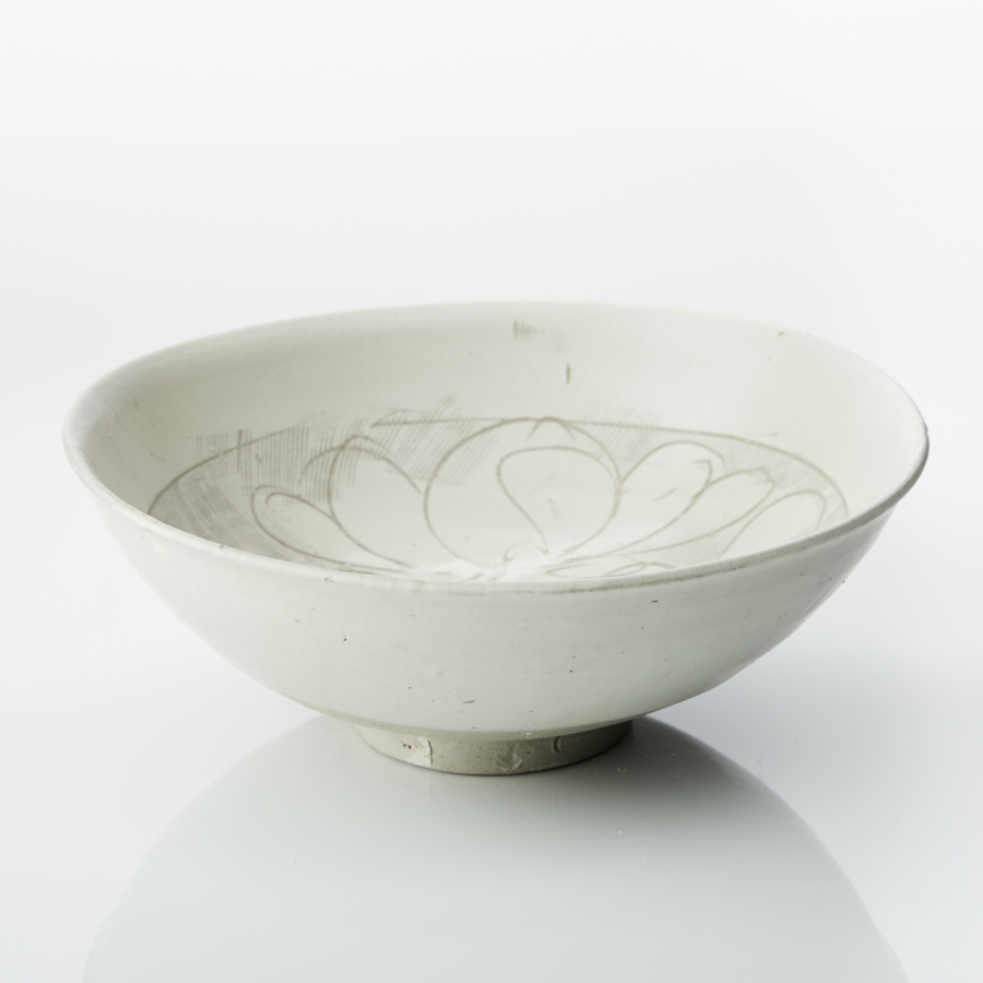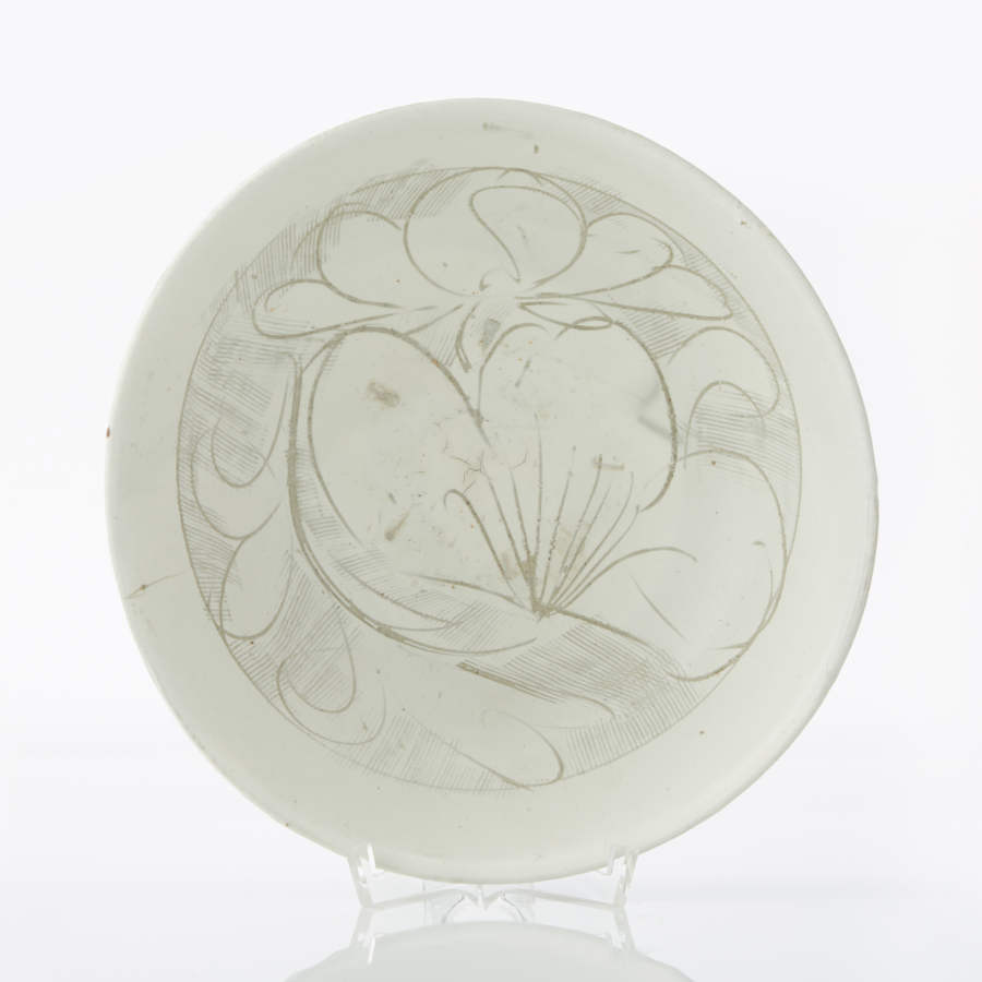 Cizhou is decorated with carvings. Ø 21 cm. status report The corners of the mouth are cracked. Minor manufacturing defects. Source Swedish private collection formed from 1985 to 1988. 76108