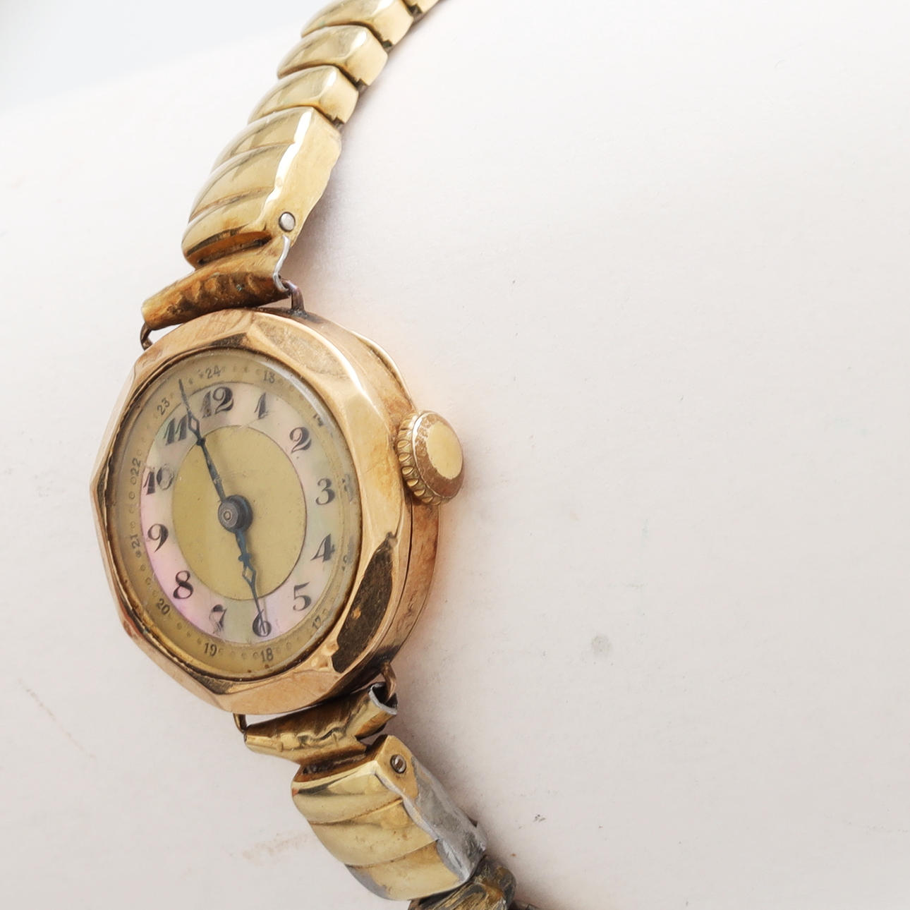 Diameter without crown 20 mm. Gold 14K in outer case. Condition Normal wear and tear. Worked at the time of cataloging. No functional warranty is provided. 193898