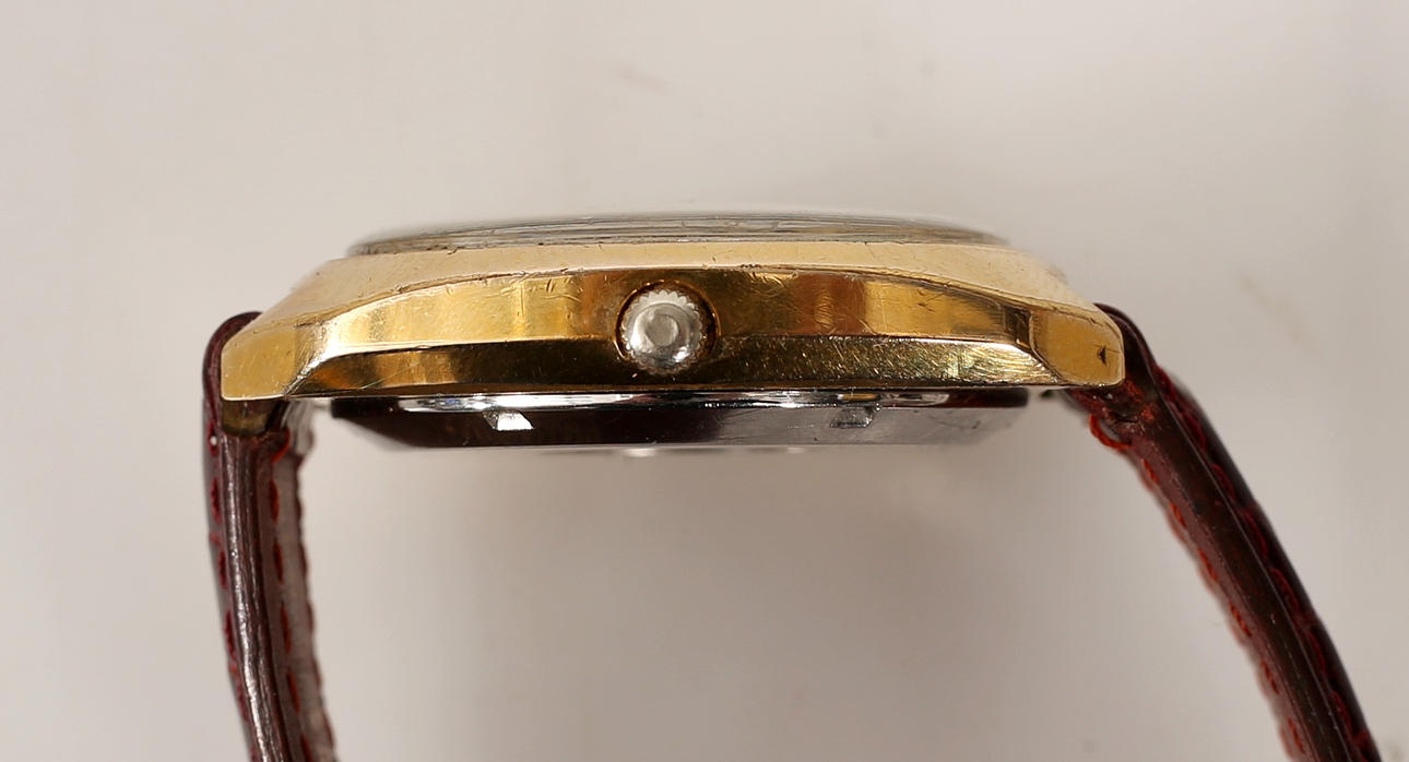 Electronic, Chronometer, double with leather strap, 1970s. Dimensions approx. 36x40 mm Tuning Fork Clock. Condition Normal wear and tear Worked at the time of cataloging. No functional warranty is provided. 17933