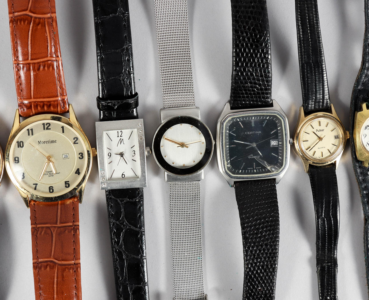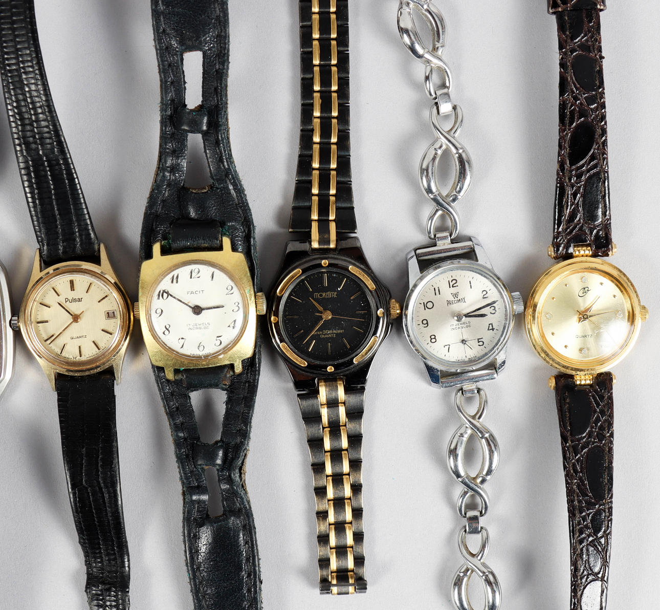 Mostly ladie's wristwatches. Mixed brands, both quartz and manual works. Condition Normal wear and tear, minor damage may occur. Not functional tested. No functional warranty is provided. 43418