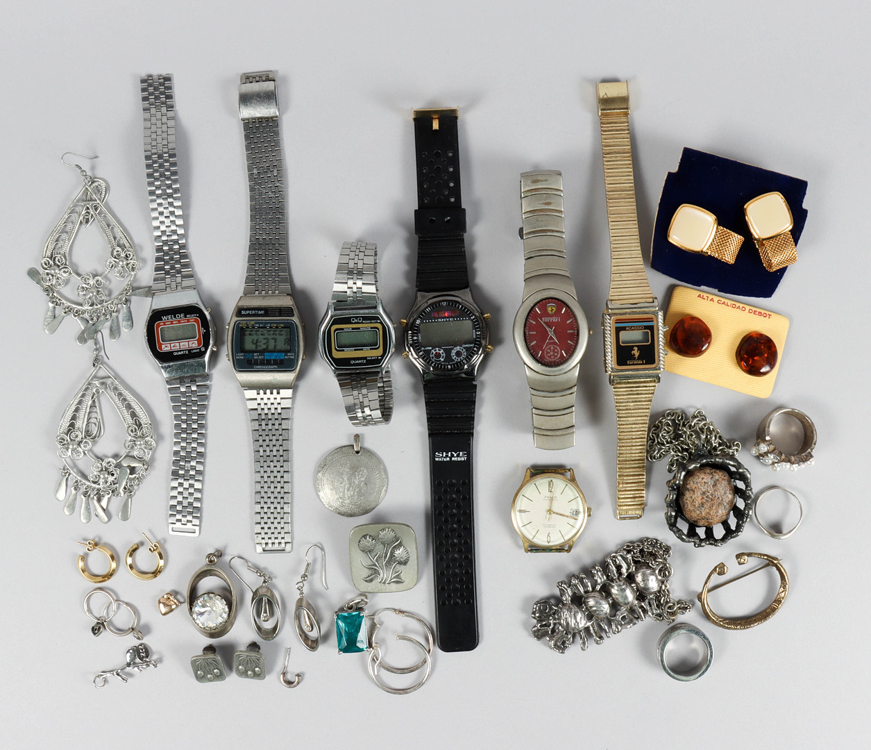 7 wristwatches, all quartz except Anker which are automatic. Various bijouterie in mixed materials and base metals. Condition Normal wear and tear, minor damage may occur. Watches not functional tested, no warranty is given. 44035