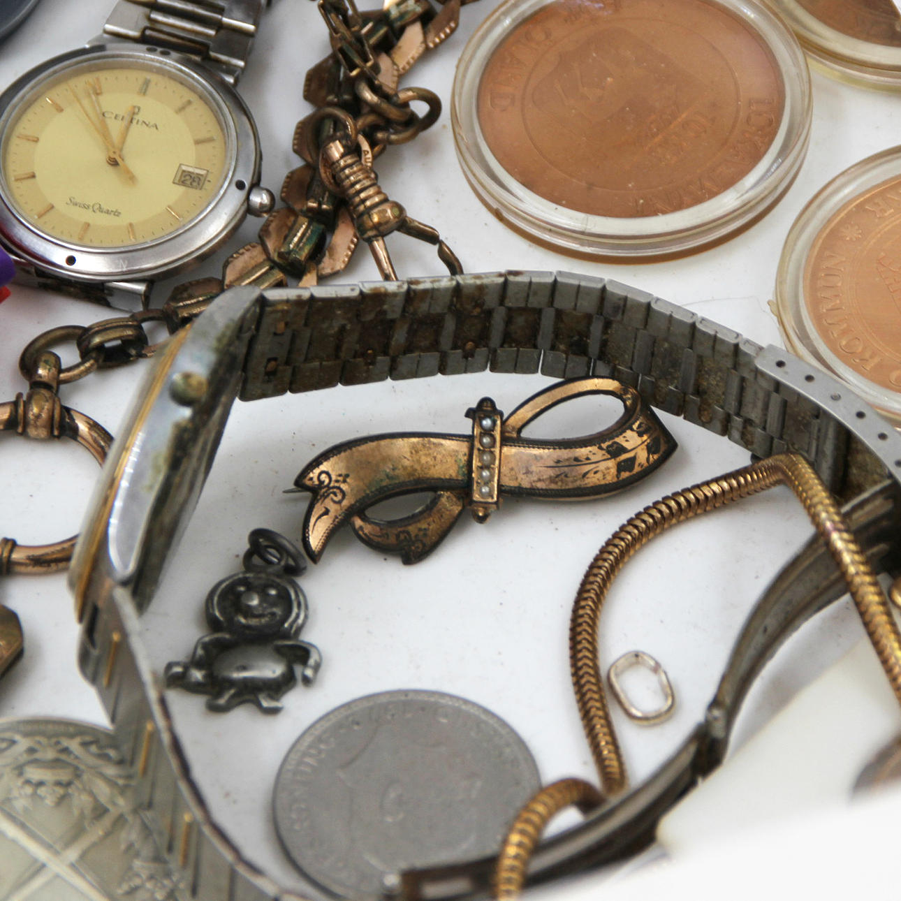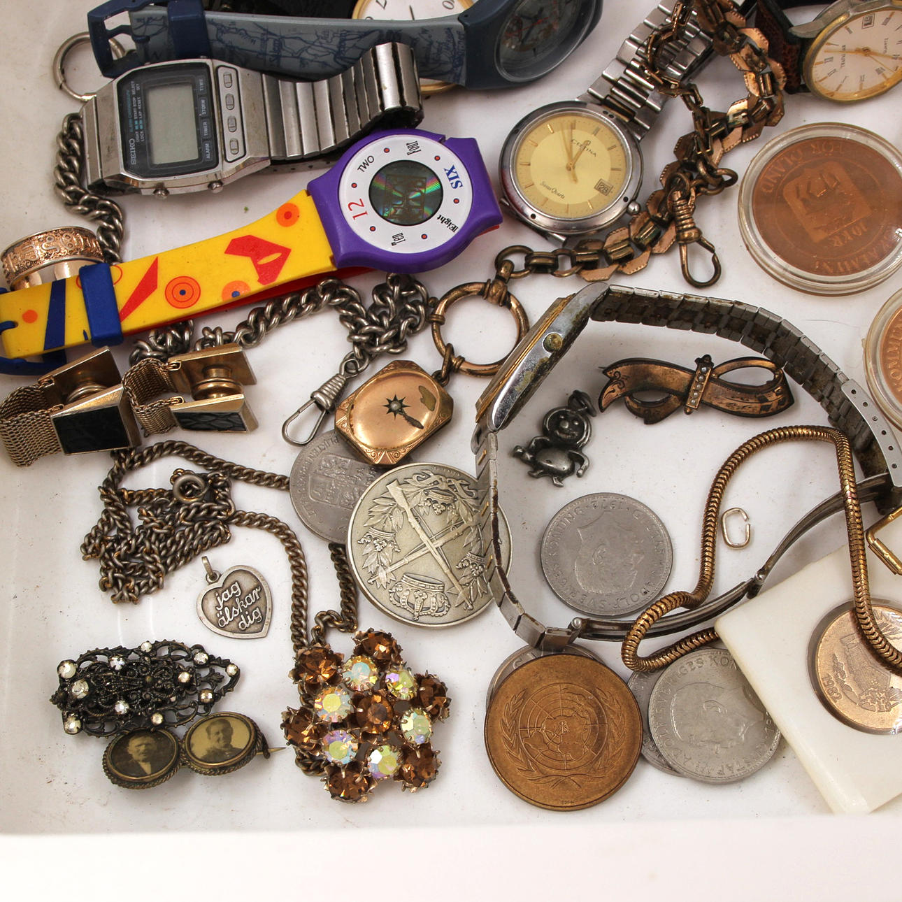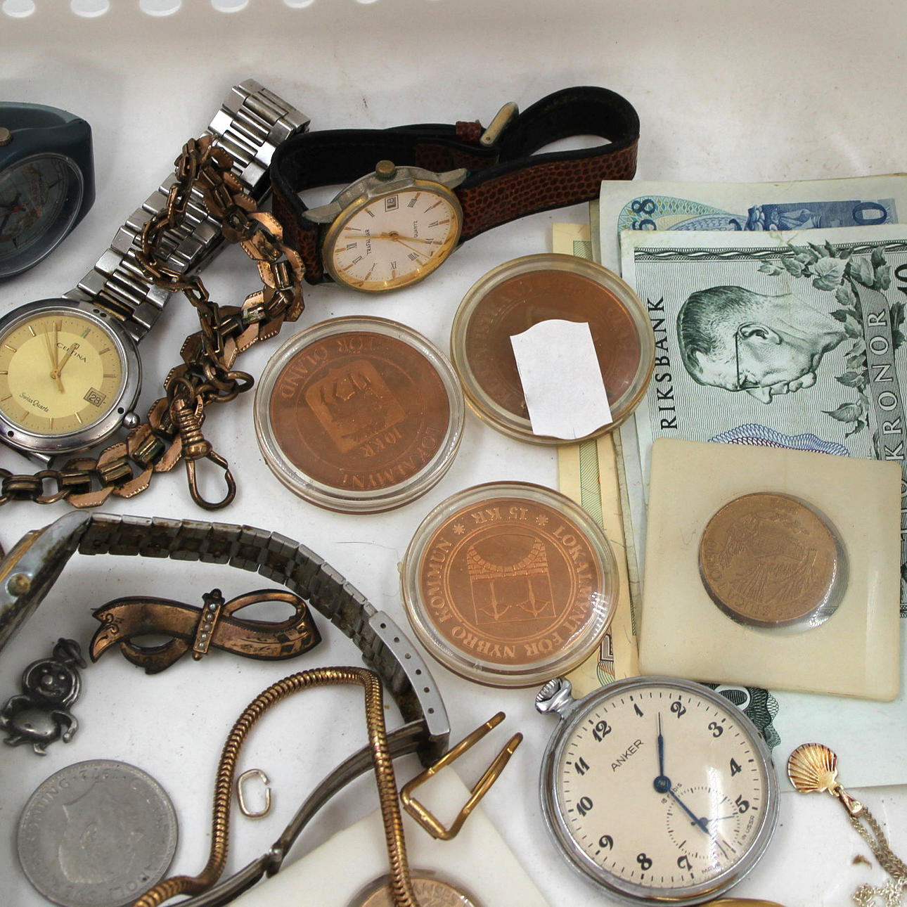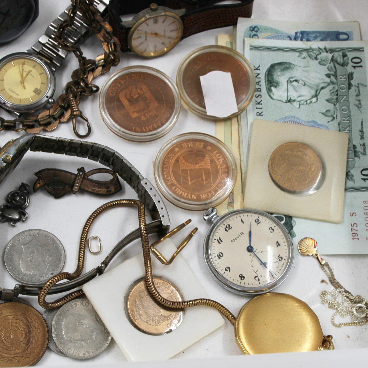 WRISTWATCHES, POCKET WATCHES, COMMEMORATIVE COINS, JEWELRY, BIJOUTERIE.