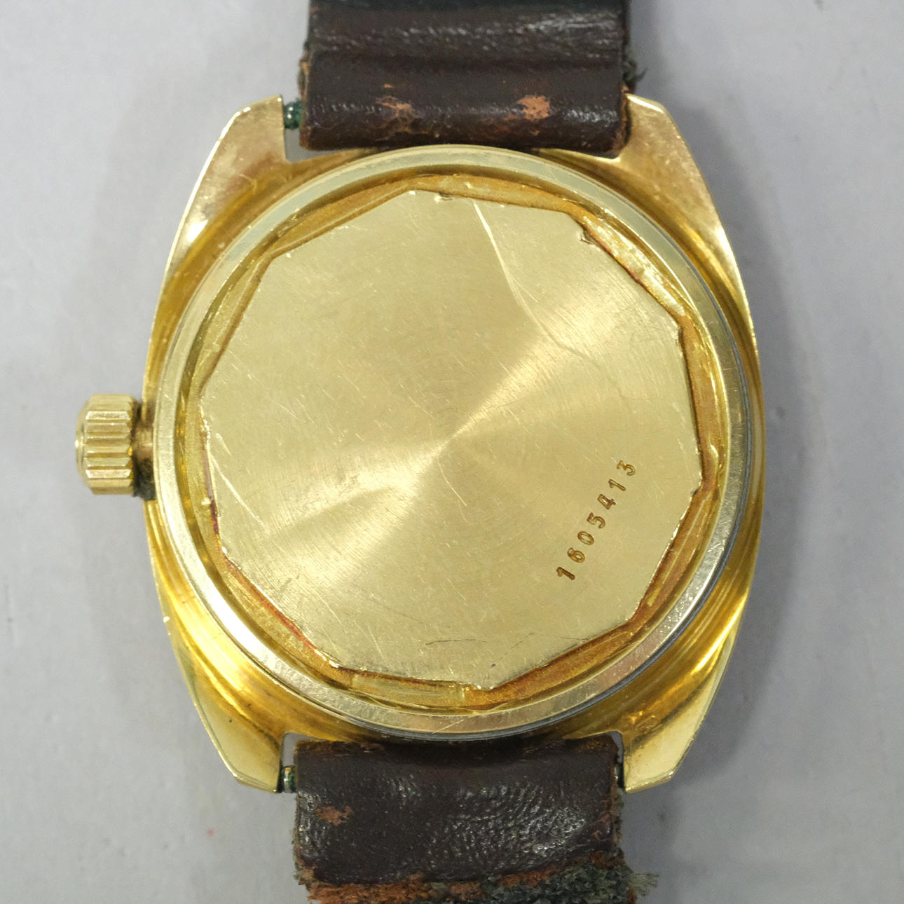 Date display, screw case, diameter 3,3cm. Case number 1605413 AR 1141. Condition Strap with heavy wear. Wear scratches. Back case with small jack. Crown button loose, seems to work, hence no functional warranty is provided. 40070