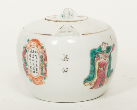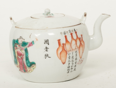 1900s, decoration in enamel colors, and calligraphy, height 12 cm, minor wear, defective metal handle